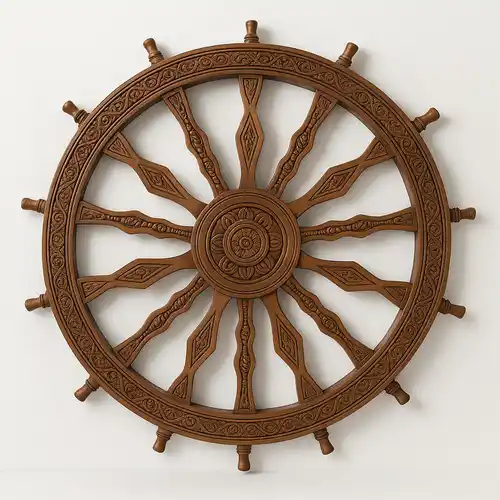 Indian handicraft wooden wheel for wall hanging decoration. 2x2 size, round shape, wood material. Orders ship within a week.
