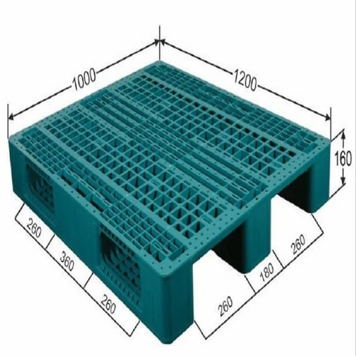 Blue HDPE industrial plastic pallet, 1200x1000x160mm. Ideal for storing drums. Made in India, available for immediate delivery.