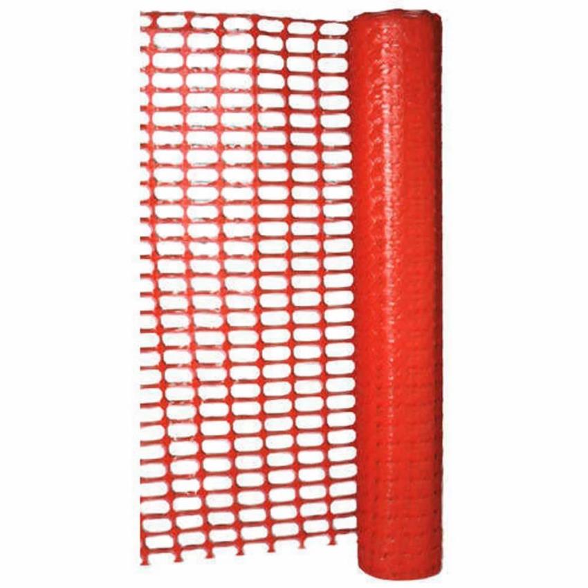 Orange HDPE barricading net for safety purposes. 50-meter roll with a 10-year lifespan. Paint-coated finish, manufactured in India.