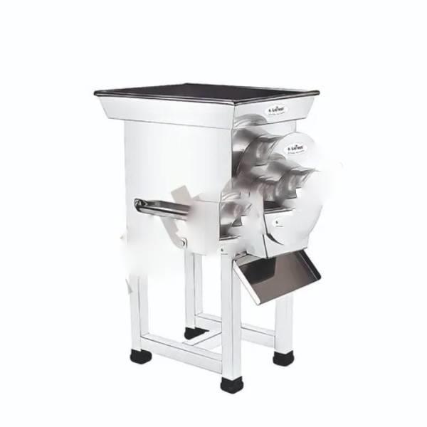 Heavy-duty gravy machine with 5 HP motor. Stainless steel construction for rotor and cutters. Capacity range of 200-300 KG. Compact size: 22.5x34x17.