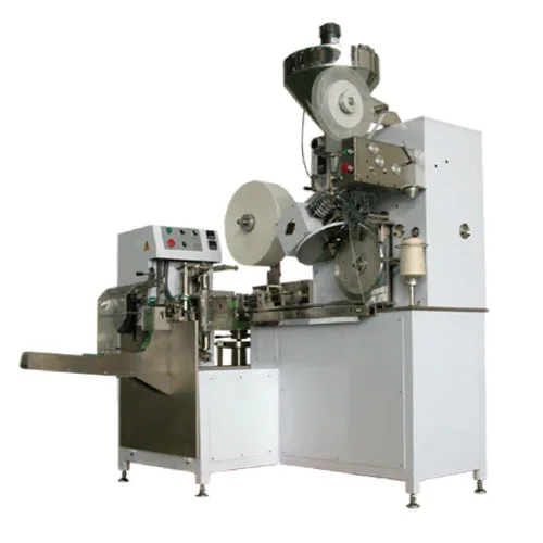 High-speed single chamber tea bag packing machine with heat-sealable outer envelope capabilities. This advanced equipment is designed for efficient tea bag production.