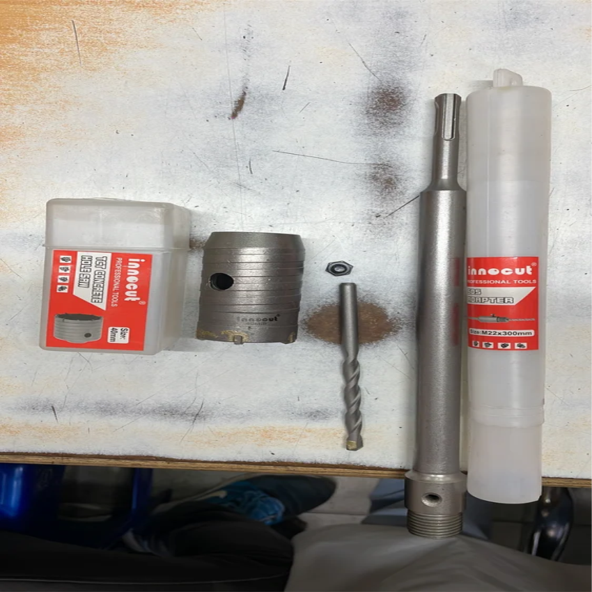 High speed steel concrete holesaw for industrial applications. Designed for efficient cutting of concrete materials. Robust construction for demanding environments.