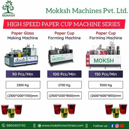 Automatic tea cup making machine, new condition, 2-year warranty. Produces up to 70ml cups at 60 cups/min. Three-phase power. Minimum order: 1 unit. Heavy-duty construction, 2000 Kgs.