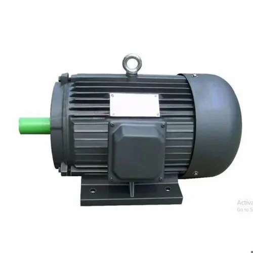 Three-phase induction motor, 5 HP rated power (3.7KW), 440V, 1500 RPM, IP55 rated. Features copper coil and shock-proof design.