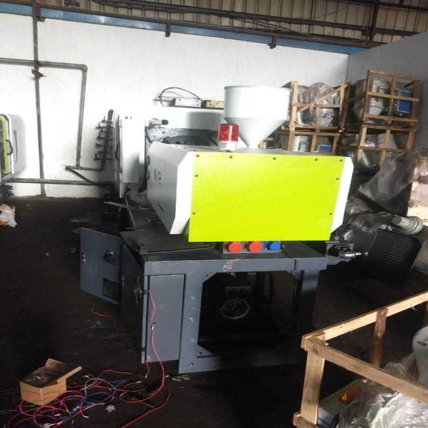 Automatic horizontal injection moulding machine, 110 Ton capacity. 11 KW power, 440V, three-phase. Features hydraulic clamping, 250 gm stroke volume, 2-year warranty.