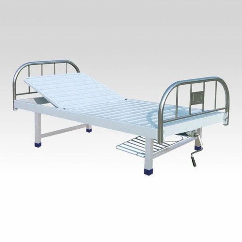 Adjustable mild steel hospital bed for rental, measuring 2075mm x 920mm x 610mm. Features a white color. Preferred for Mumbai location.