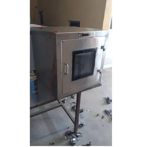 Static Pass Box for hospital use. Features 2x2 outer dimensions. Provides a sealed environment for material transfer, ensuring contamination control.