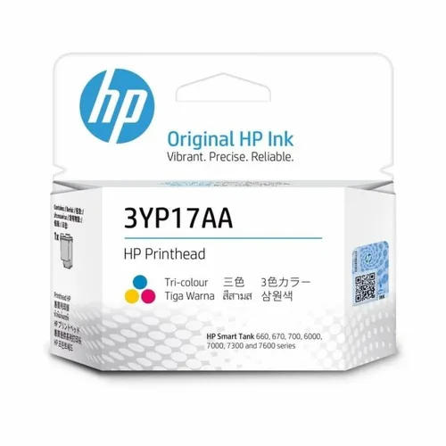 HP Tri-color Printhead, model 3YP17AA. Packaged in a box. For HP Smart Tank 660, 670, 700, 6000, 7000, 7300, and 7600 series printers.