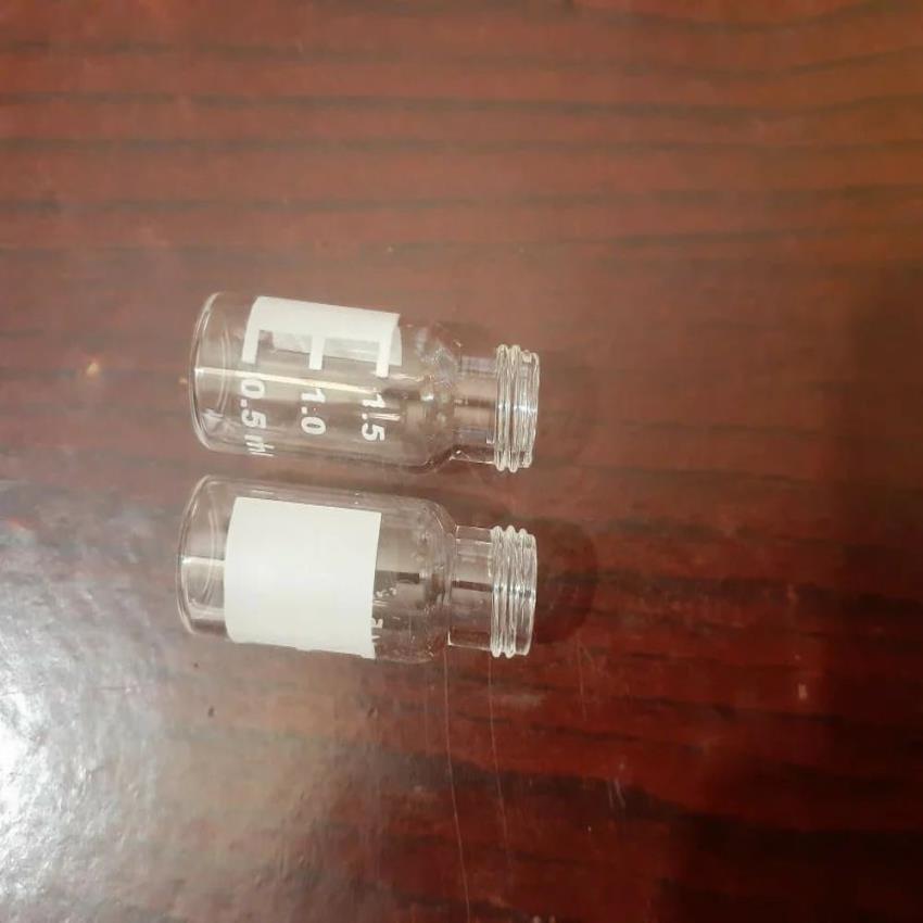Transparent 2 ml glass vials with screw caps, 15 mm size. Suitable for research applications. Box contains 100 pieces, 5-year shelf life.