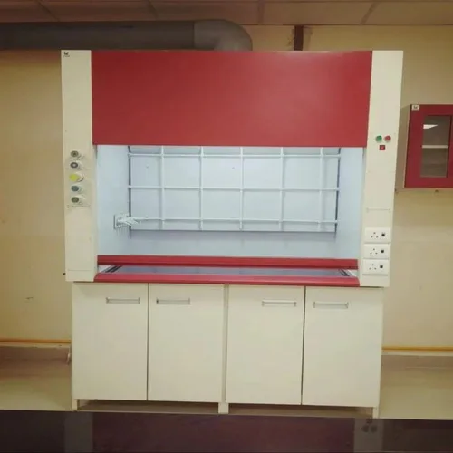 Mild steel laboratory fume machine, 1800x940x2150 mm external size. Operates on 220V, 50Hz. Features paint-coated finish.