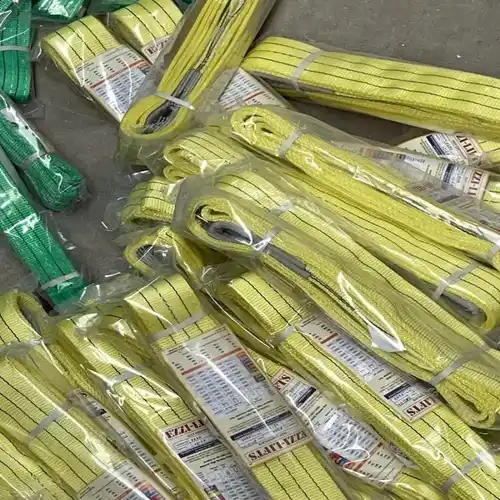 Polyester Hydra lifting bag belt, 10mm hardness, 6MTR length, 1-ton capacity. Orange color, 12 size. Made in India. Suitable for industrial lifting applications.