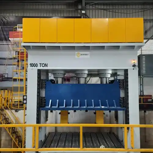 Semi-automatic hydraulic die spotting press machine for industrial use. Features include inching, tilting, and moving bolsters with a servo system. Operates at 360V.