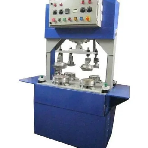 Semi-automatic mild steel hydraulic machine for aluminium foil paper plates. Produces 15000 PC/HR with reliable operation.