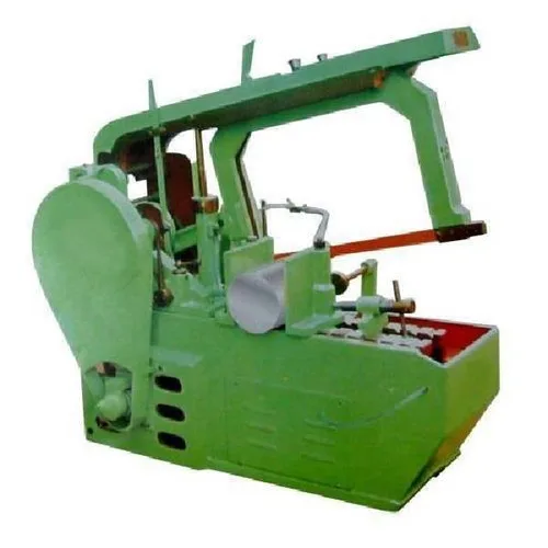 Semi-automatic hydraulic hacksaw machine for mild steel. Electric powered at 2.20 KW, 50-60 Hz, 220-440 V. Uses a 10-inch cutting blade.