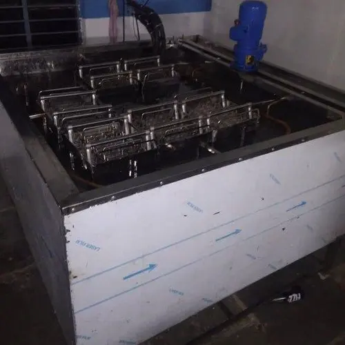 Semi-automatic ice candy making machine, horizontal tank orientation. SS304 grade material, 1Hp motor, three-phase electric powered, operates at 2 to +10 Deg C cooling temperature.