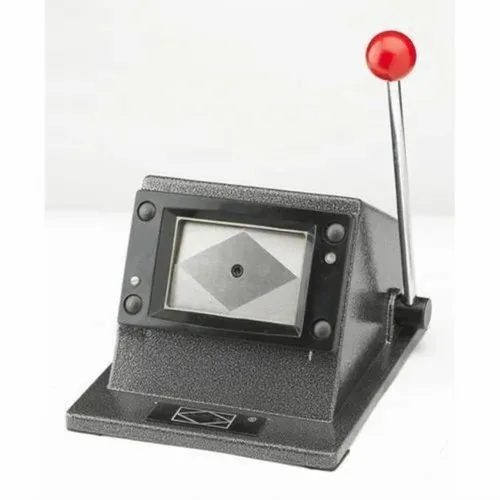 Table-mounted black ID card cutter. Punches thickness 2-6mm for ID cards, visiting cards, and photo papers. Weighs between 4-6 Kg.