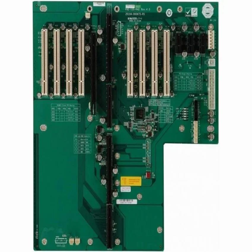 IEI PXE-13S back plane motherboard, 1.6mm thickness, supports RACK-360GW-R22, RACK-360GB-R22, RACK-305GW-R22. Features 24+4-pin ATX and 4 internal USB 2.0 pin headers. Made in India.