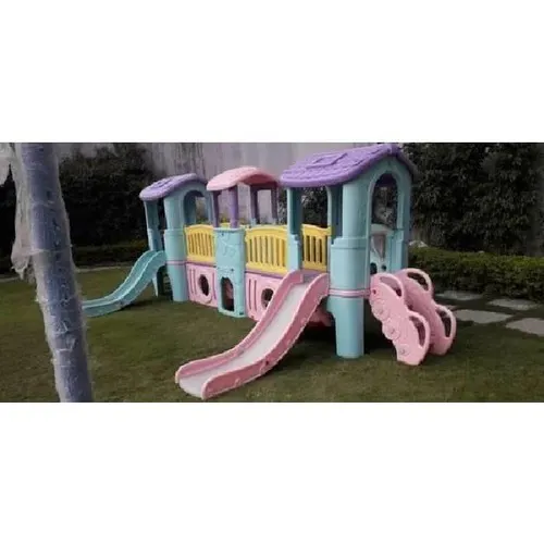 Multicolor indoor multi play station made of FRP. Measures 510x225x178 cm, suitable for schools, resorts, and parks.