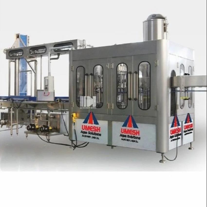 SS construction industrial automatic juice production line for plastic bottles. Offers 24 to 120 BPM capacity. Made in India.
