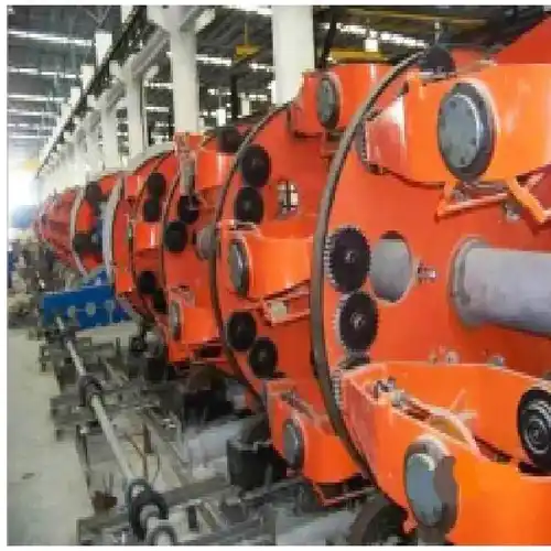 Automatic mild steel and stainless steel industrial cable laying machine with PLC control. Features magnetic pay-off, 230/440V Siemens. Orange color.