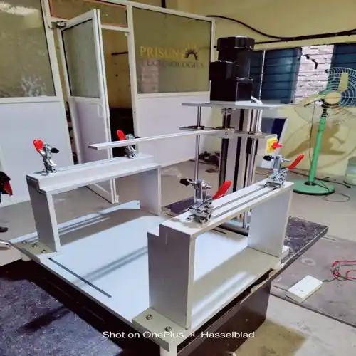 Automated industrial checking fixture for quality control. Operates on 440V with customizable color options. Designed for industrial applications and automation.