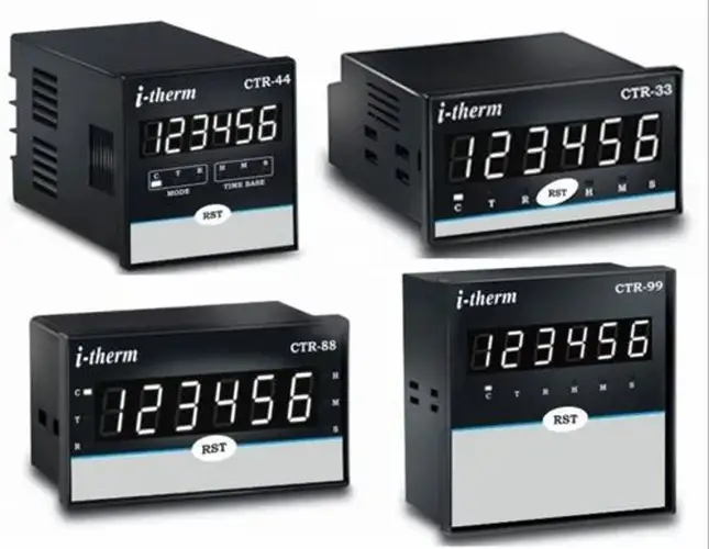 ITHERM CTR industrial digital RPM indicator controllers offer 6-digit display, 0.1 RPM resolution, and 0.05% accuracy. Operates on 90-270 VAC, measuring up to 999999 RPM.