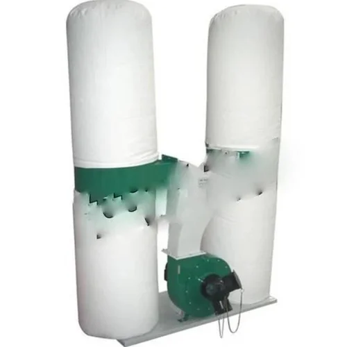 Mild steel dust collector system for the food industry. Features 15 kW power, 220V voltage, 95% dust removal efficiency, and 10 micron cartridge filtration.