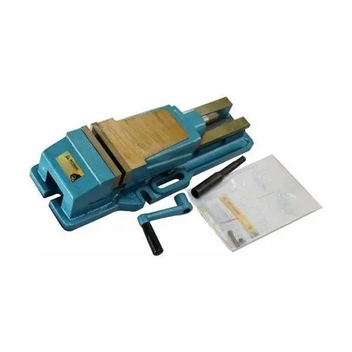 This industrial hydraulic machine vise offers a 160mm opening. Designed for demanding applications, it ensures reliable clamping and operation in blue finish.
