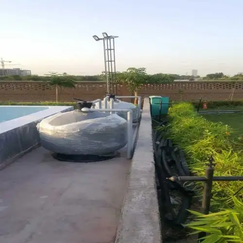 Mild steel in-ground swimming pool filtration plant for industrial applications. Features adjustable diameter, pressure, and sand weight as per requirement. Durable construction.
