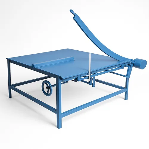 Industrial hand-operated board cutter made of mild steel. Features a 52-inch size and maximum cut thickness of 170mm. Max blade size 3200 x 2000 mm.