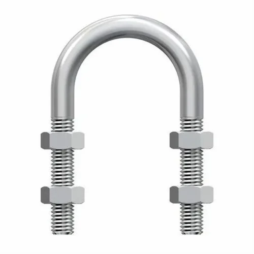 Round head mild steel U-bolt for industrial use. Diameter 8-26 mm. Packed in 50 Kg/Pack quantities. Provides robust fastening for demanding applications.