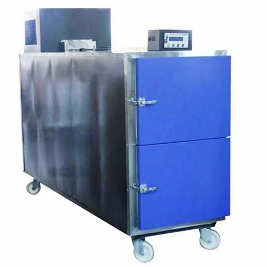 Industrial mortuary chamber, MS/SS construction, made in India. Offers temperature control down to -2°C. Includes a 1-year warranty for industrial applications.