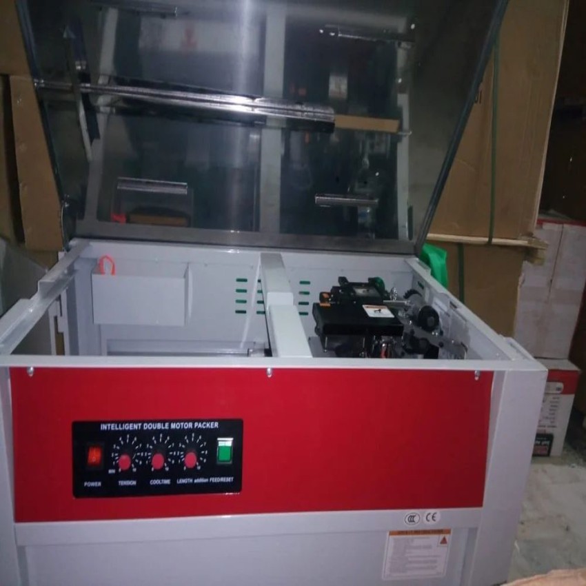 Mild steel, single phase industrial strapping machine. Offers 30 straps/min capacity and 2stp/s strapping speed. Uses 220V, 0.65kW power. Accommodates 9/12/15mm strap width.
