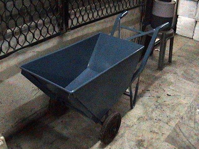 Standard industrial wheel barrow trolley made in India. Features standard load capacity, type, features, and dimensions. Efficiently designed for industrial material handling.