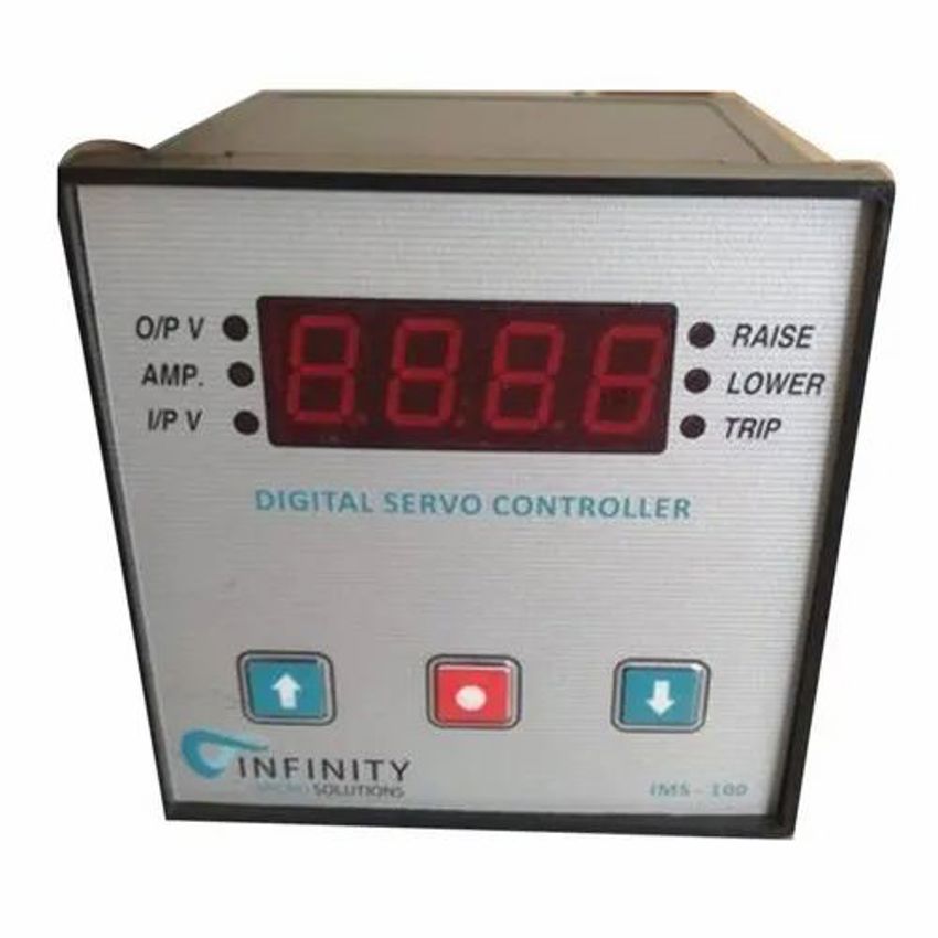 Industrial use servo controller with 12V DC buzzer. Features CT ratio 5A-900A, Triac motor up to 6 Amp. Designed for panel mount installation.