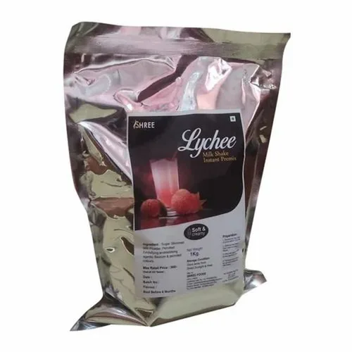 Litchi flavored milk shake premix powder. Shelf life of 6 months. Comes in a 1kg packet. Ideal for quick beverage preparation.