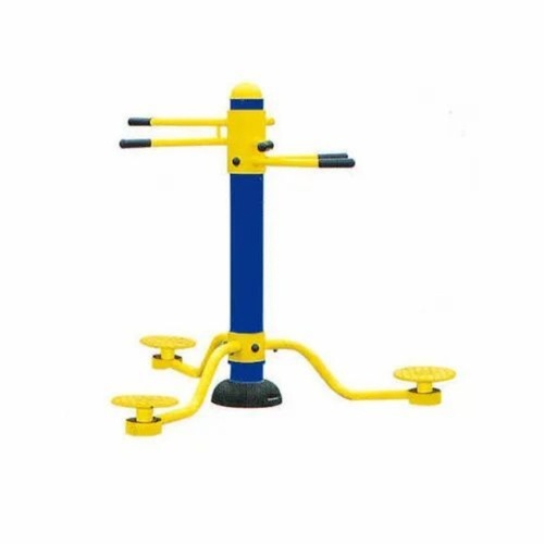 Gym equipment featuring an iron pipe construction with color-coated surface finish. Available in yellow and blue. Packaged in a box for secure delivery and storage.