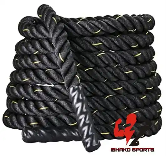 Black PVC battle rope, 20 feet long, 38 mm diameter. Designed for gym use. Imported quality, made in India.