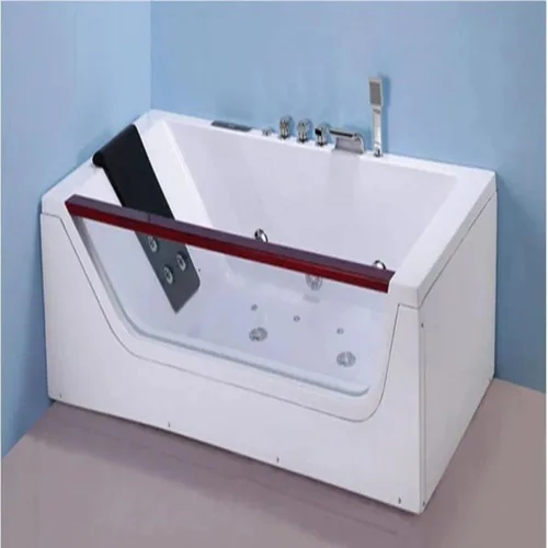Ivory acrylic massage bathtub, 1800*900*640 mm dimensions. Features 1.5 HP blower, 220 voltage, and optional 2 kW water heater. Rectangular shape.