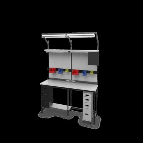 Aluminium J-07 adjustable office workstation with a polished surface finish. Features customized options for height, lockability, and smart lighting, originating from India.