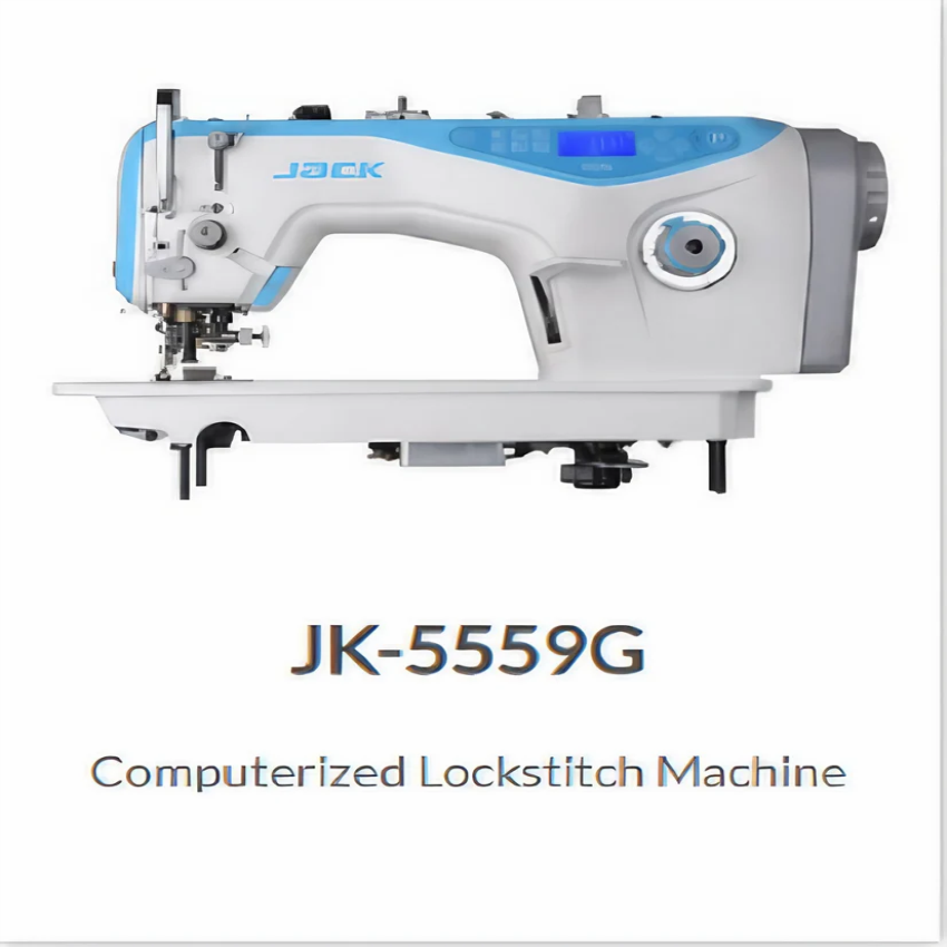 Jack 5559G automatic lockstitch machine for heavy materials. Features a max sewing speed of 3000-4000 stitches per minute. Designed for industrial use.