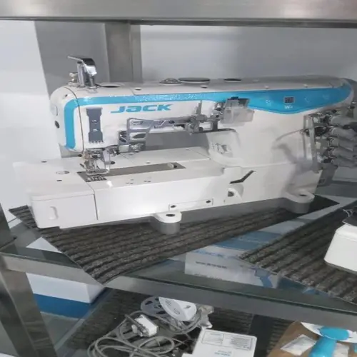 Industrial flatlock sewing machine designed for high-volume production. Reliable performance and durable construction for professional garment manufacturing. Efficient stitching capabilities.