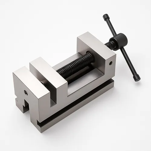 Mild steel grinding vice with screw-type operation. Features a fixed base and 4-inch size, suitable for grinding applications. Available jaw openings include 5, 6, and 4 inches. Made in India.