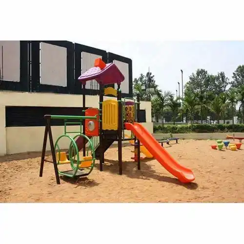 Outdoor playground slide for children aged 3-5 and 5-10 years. Constructed from plastic and iron. Size: 15 x 12 x 10. Made in India. Available in stock.