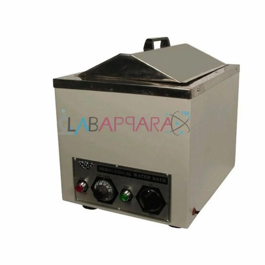 Lab-812 serological water bath reaches 90°C with +/-1°C accuracy. Features stainless steel inner tank and double-wall construction with powder-coated mild steel outer chamber.