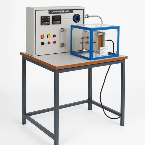 Copper heat transfer equipment for college laboratories. Uses water as medium, powered by 230V AC. Features copper plate (200mm dia, 8-10mm thick) and digital voltmeter.