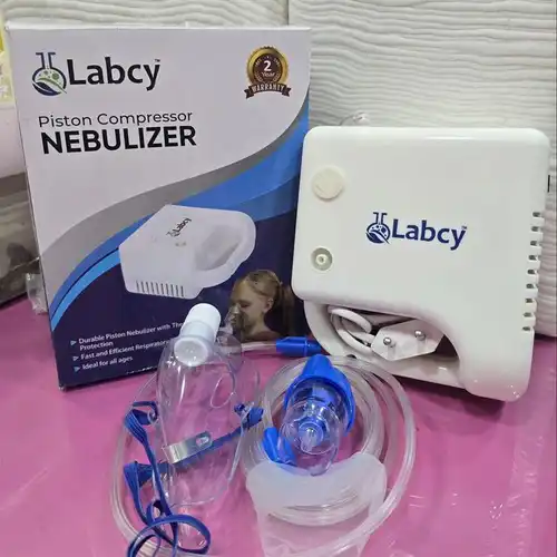 Portable aerosol delivery device. Efficiently converts liquid medication into a fine mist for inhalation. Compact design for easy use and transport. Essential for respiratory therapy.