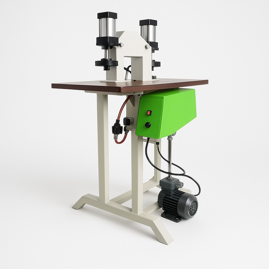Semi-automatic label transfer pasting machine with 0.25 Kw power. Achieves 100 pieces/hour, 2000-3000 stitch/min speed. Suitable for medium and heavy materials.