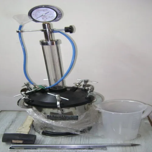 Manual stainless steel air entrainment meter for laboratory use. Silver finish, standard size, made in India.