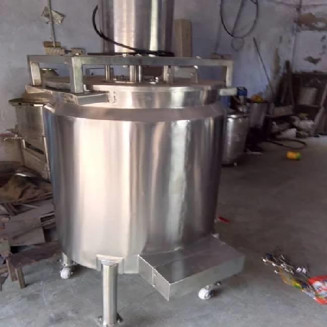 Semi-automatic stainless steel homogenizer (SS304) for pharmaceuticals. Operates at 200 Bar pressure, 220V, 50Hz, single phase. Production capacity of 100 LPH.